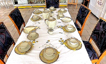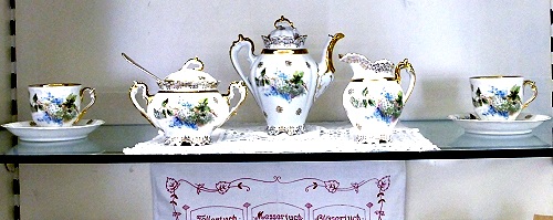 Der Kaffee- oder Teetisch wurde im Biedermeier zum Zentrum des Familienlebens. Dabei wurde besonderes Augenmerk auf das Geschirr gerichtet. Neben den Tassen bestand das Kaffeeservice aus verschiedenen Kannen und einem Zuckergefäß. Kuchenteller gehörten zunächst nicht dazu, da kein Kuchen zu Tee oder Kaffee gereicht wurde.
